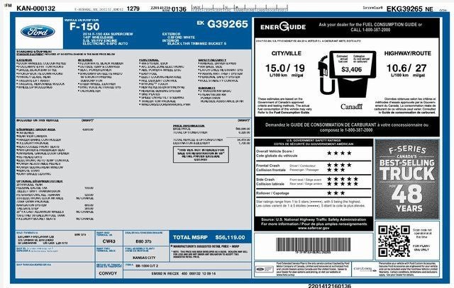 This Oxford White 2014 Ford F-150 FX4 4WD has a Navigation System, CLEAN CARFAX!, LEATHER!, HEATED SEATS, Backup Camera, Park Assist/Parking Sensors, REMOTE START (2), 4D SuperCrew, 5.0L V8 FFV, 6-Speed Automatic Electronic, 4WD, 4 Speakers, 4.2 LCD Productivity Screen in Instrument Cluster, ABS brakes, Air Conditioning, Alloy wheels, AM/FM radio: SiriusXM, Compass, Delay-off headlights, Electronic Stability Control, Illuminated entry, Leather steering wheel, Low tire pressure warning system, Navigation, Outside temperature display, Panic alarm, Power driver seat, Radio data system, Radio: AM/FM Stereo/Single-CD Player w/Clock, Remote keyless entry, SiriusXM Satellite Radio, Speed control, Steering wheel mounted audio controls, SYNC MyFord, SYNC Voice Activated Communication & Entertainment, Tilt steering wheel, Traction control.