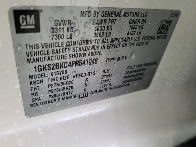 This White Diamond Tricoat 2015 GMC Yukon SLT 4WD has a NADA retail value of $19,800, Navigation System, LEATHER!, HEATED SEATS, Sunroof/Moonroof, Backup Camera, Park Assist/Parking Sensors, REMOTE START, 4D Sport Utility, EcoTec3 5.3L V8, 6-Speed Automatic Electronic with Overdrive, 4WD, 20 x 9 Polished Aluminum Wheels, 22 x 9.0 Steel Interim (LPO) Wheels, 3rd row seats: split-bench, 4-Wheel Disc Brakes, 5 Auxiliary 12-volt Power Outlets, 9 Speakers, Air Conditioning, AM/FM radio: SiriusXM, AppLink/Apple CarPlay and Android Auto, Brake assist, Color-Keyed Heated Leather-Wrapped Steering Wheel, Delay-off headlights, Driver Alert Package, Dual front impact airbags, Emergency communication system: OnStar Directions & Connections, Exterior Parking Camera Rear, Front Center Armrest, Heated & Cooled Full-Feature Reclining Bucket Seats, Heated door mirrors, Heated front seats, Heated rear seats, Heated steering wheel, Low tire pressure warning system, Memory Package, Memory seat, Occupant sensing airbag, OnStar Basic Plan For 5 Years, Outside temperature display, Panic alarm, Passive Entry System, Pedal memory, Power 2nd Row 60/40 Split-Folding Bench Seat, Power Liftgate, Power steering, Power Tilt & Telescopic Steering Column, Power Tilt-Sliding Sunroof w/Express-Open/Close, Power-Adjustable Pedals For Accelerator & Brake, Radio: AM/FM/SiriusXM/HD w/Navigation, Rain sensing wipers, Rear air conditioning, Rear Seat Blu-Ray/DVD Entertainment System, Remote Keyless Entry, Safety Alert Seat, Side Blind Zone Alert w/Lane Change Alert, Speed control, Steering wheel mounted audio controls, Tilt steering wheel, Traction control, Ventilated front seats, Wheels: 22 5-Spoke Silver (LPO), Wireless Charging.