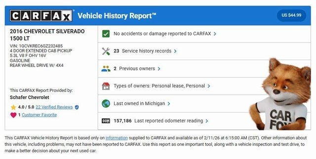 Schafer Chevrolet is proud to have a 4.5 star Google review rating on over 1,000 reviews by real customers just like you. Our store has been reliable and trusted for our 90 years in business. Schafer Chevrolet is the only dealer to give you all this! Our inventory moves fast! So get off the internet now, and give us a call or come in! You'll be glad you did! * 3 day return policy is only available on vehicles less than ten years of age and under 100,000 miles. Limited to 150 miles after purchase. $500 restocking fee applies.** 6 month/6,000 mile limited powertrain warranty only pertains to vehicles with under 100,000 miles and less than ten years of age.