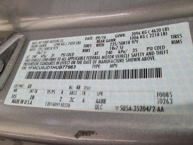 This Ingot Silver Metallic 2017 Ford Escape Titanium Navigation System, LEATHER!, HEATED SEATS, Backup Camera, Park Assist/Parking Sensors, REMOTE START, 4D Sport Utility, 1.5L EcoBoost, 6-Speed Automatic, FWD, 10 Speakers, 4-Wheel Disc Brakes, Air Conditioning, AM/FM radio: SiriusXM, Auto-dimming Rear-View mirror, Brake assist, Delay-off headlights, Dual front side impact airbags, Emergency communication system: SYNC 3 911 Assist, Exterior Parking Camera Rear, Front Bucket Seats, Heated door mirrors, Heated front seats, Heated Leather-Trimmed Buckets w/60/40 Rear Seat, Leather Shift Knob, Memory seat, Navigation System, Occupant sensing airbag, Panic alarm, Power driver seat, Power Liftgate, Power passenger seat, Power steering, Power windows, Rear Parking Sensors, Remote keyless entry, Speed control, Steering wheel mounted audio controls, SYNC 3 Communications & Entertainment System, Tilt steering wheel, Traction control, Wheels: 18 Sparkle Silver-Painted Aluminum.