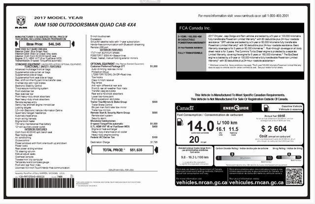 This Blue Streak Pearlcoat 2017 Ram 1500 SLT 4WD has a NADA retail value of $18,825, CLEAN CARFAX!, REMOTE START, 4D Quad Cab, HEMI 5.7L V8 Multi Displacement VVT, 8-Speed Automatic, 4WD, 4-Wheel Disc Brakes, 40/20/40 Split Bench Seat, ABS brakes, Air Conditioning, Alloy wheels, Cloth 40/20/40 Bench Seat, Compass, Delay-off headlights, Dual front side impact airbags, Electronic Stability Control, Heated door mirrors, Illuminated entry, Low tire pressure warning system, Overhead airbag, Panic alarm, Power steering, Remote keyless entry, Speed control, Tilt steering wheel, Traction control.