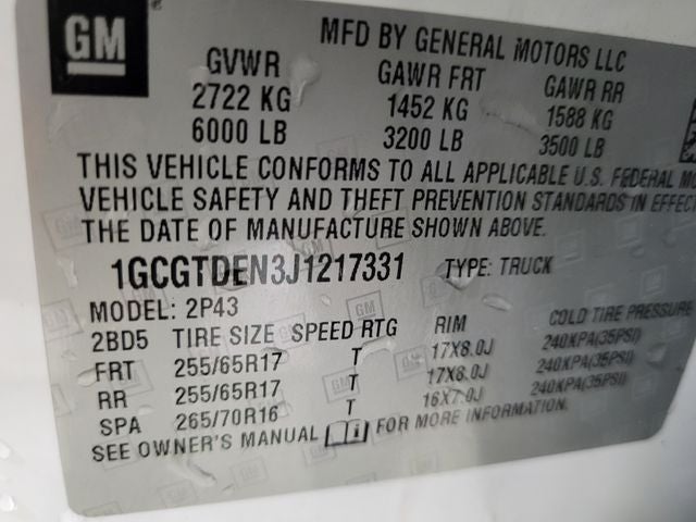 Recent Arrival! Summit White 2018 Chevrolet Colorado Z71 V6 4WD 8-Speed Automatic has a NADA retail value of $19,675. , It also has HEATED SEATS, Backup Camera, 4D Crew Cab, V6, 8-Speed Automatic, 4WD, 4-Way Power Front Passenger Seat Adjuster, 4-Wheel Disc Brakes, 6-Speaker Audio System Feature, Air Conditioning, AM/FM radio: SiriusXM, Apple CarPlay, Bose Premium 7-Speaker Audio System Feature, Cloth/Leatherette Seat Trim, Delay-off headlights, Driver 4-Way Power Seat Adjuster, Dual front impact airbags, Dual front side impact airbags, Exterior Parking Camera Rear, Heated door mirrors, Heated Driver & Front Passenger Seats, Heavy-Duty Trailering Package, Low tire pressure warning system, Outside temperature display, Panic alarm, Power driver seat, Radio: AM/FM Stereo w/8 Diagonal Color Touch Nav., SiriusXM Satellite Radio, Speed control, Steering wheel mounted audio controls, Tilt steering wheel, Traction control, Wheels: 17 x 8 Dark Argent Metallic Cast Alloy.