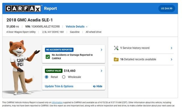 Recent Arrival! Mineral Metallic 2018 GMC Acadia SLE-1 2.5L 4-Cylinder DGI DOHC VVT AWD 6-Speed Automatic Clean CARFAX. CLEAN CARFAX!, Backup Camera, 4D Sport Utility, 2.5L 4-Cylinder DGI DOHC VVT, 6-Speed Automatic, AWD, 17 x 7.5 Aluminum Wheels, 3rd row seats: split-bench, 4-Wheel Disc Brakes, 6 Speakers, 7-Passenger (2-3-2 Seating Configuration), ABS brakes, Air Conditioning, Apple CarPlay/Android Auto, Brake assist, Delay-off headlights, Dual front side impact airbags, Emergency communication system: OnStar and GMC connected services capable, Exterior Parking Camera Rear, Four wheel independent suspension, Front Bucket Seats, Front dual zone A/C, Heated door mirrors, Occupant sensing airbag, Outside temperature display, Panic alarm, Passenger door bin, Power steering, Premium audio system: GMC Infotainment System, Premium Cloth Seat Trim, Radio: AM/FM w/7 Diagonal Color Touch Screen, Rear window defroster, Remote keyless entry, SiriusXM Satellite Radio, Speed control, Tilt steering wheel, Traction control.