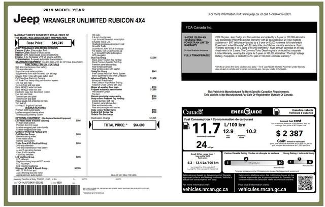 Recent Arrival! Firecracker Red Clearcoat 2019 Jeep Wrangler Unlimited Rubicon 3.6L V6 24V VVT 4WD 8-Speed Automatic. This Jeep has a NADA retail value of $38,625, Navigation System, CLEAN CARFAX!, LEATHER!, HEATED SEATS, Backup Camera, Park Assist/Parking Sensors, REMOTE START (2), 4D Sport Utility, 3.6L V6 24V VVT, 8-Speed Automatic, 4WD, 4-Wheel Disc Brakes, 8 Speakers, ABS brakes, Air Conditioning, AM/FM radio: SiriusXM, Apple CarPlay/Android Auto, Brake assist, Delay-off headlights, Dual front side impact airbags, Front Bucket Seats, Heated door mirrors, Integrated roll-over protection, Leather steering wheel, Navigation System, Occupant sensing airbag, Outside temperature display, Panic alarm, ParkView Rear Back-Up Camera, Power steering, Radio: Uconnect 4 w/7 Display, Speed control, Steering wheel mounted audio controls, Tilt steering wheel, Traction control, Wheels: 17 x 7.5 Machined w/Black Pockets.
