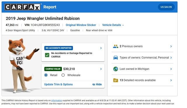 - has a NADA retail value of